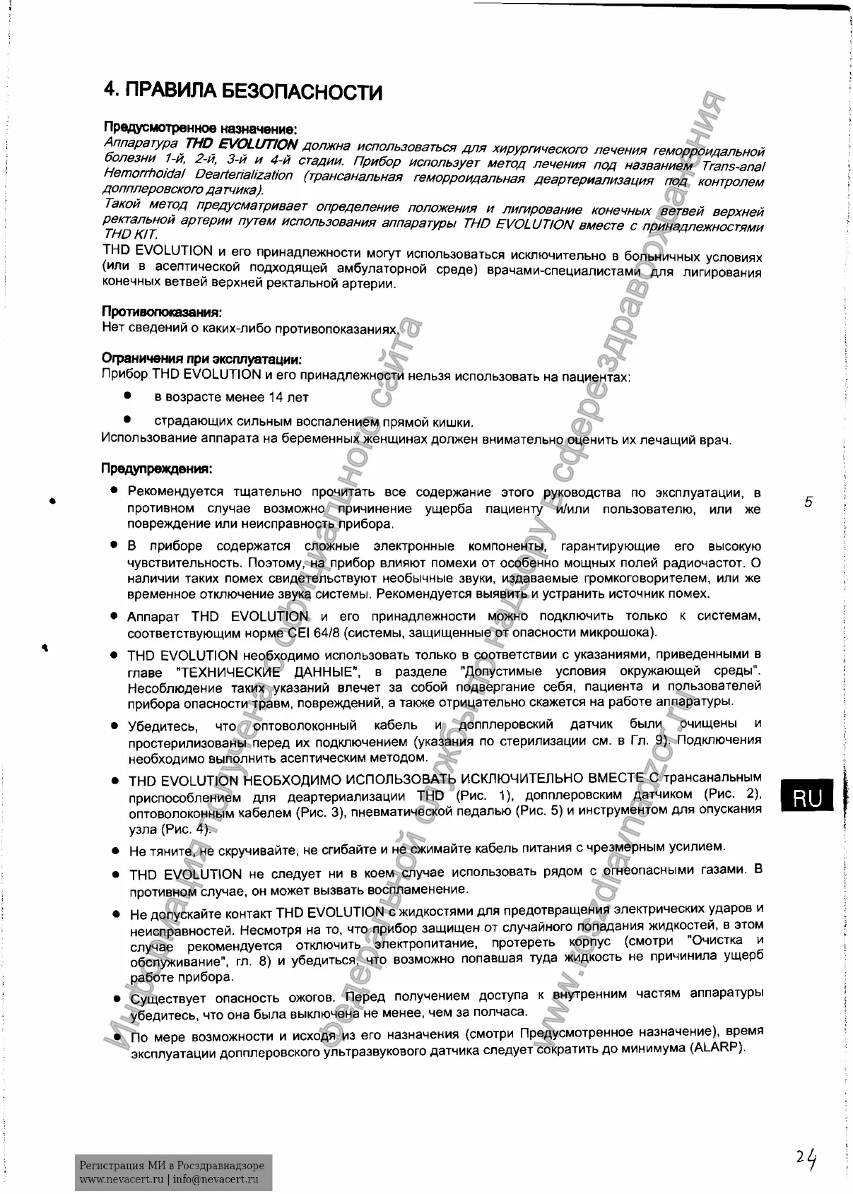 А п п а р а т у р а Т Н р E V O L U T I O N д о л ж н а и с п о л ь з о в а т ь с я д л я х и р у р г и ч е с к о г о л е ч е н и я г е м о р р о и д а л ь н о й