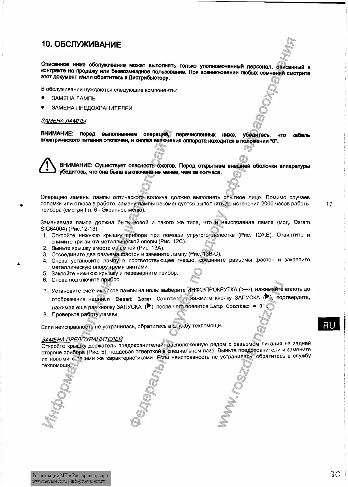 поломки или отказа в работе, за м ен у лам пы рекомендуе тс я вы пол нять д о и стечения 200 0 ч асов работы 7 /
