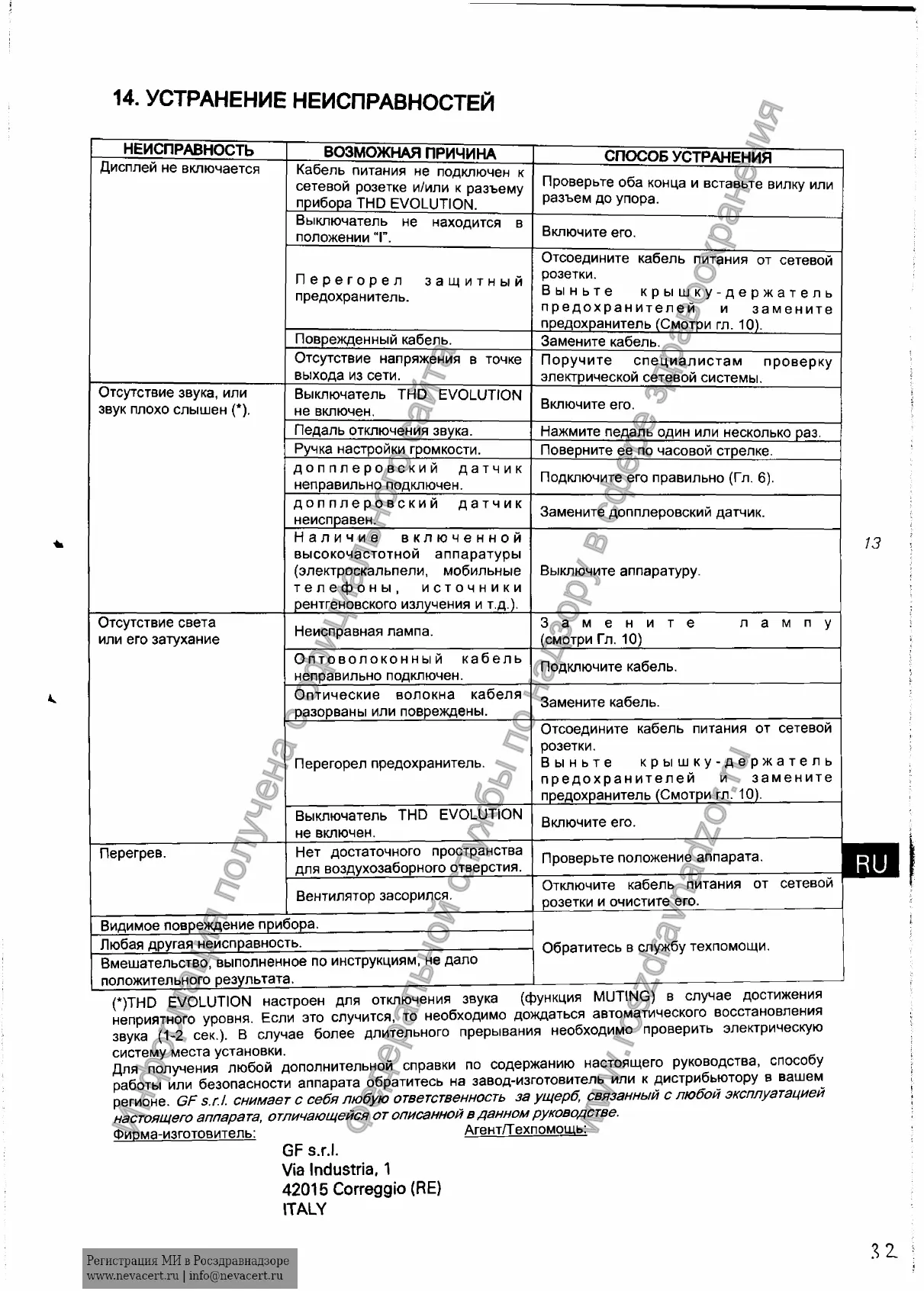 14. УСТРАНЕНИЕ НЕИСПРАВНОСТЕЙ