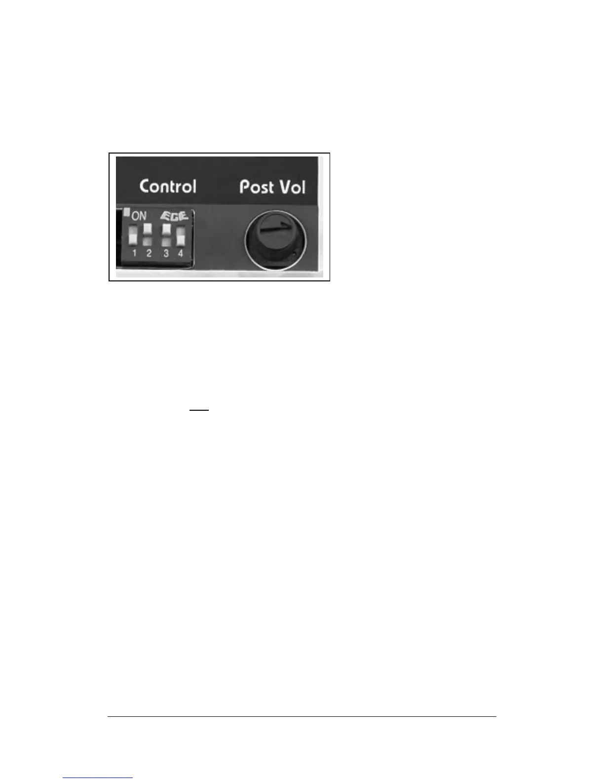 must turn on switch 1 for the Post Vol pot to have any effect. (When we say true