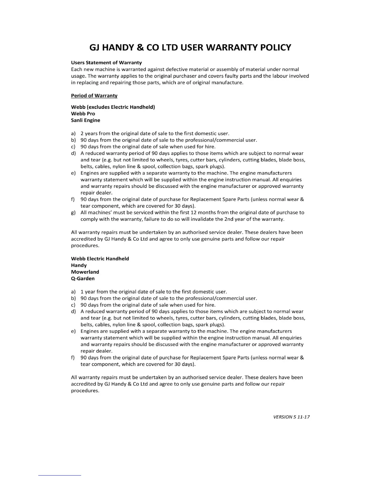 The Handy THMT26 - Warranty Policy; Warranty Coverage and Exclusions