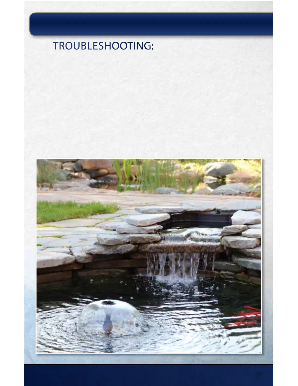 • Verify the lter sponges, bio media rocks, bio balls or UVC are not plugged