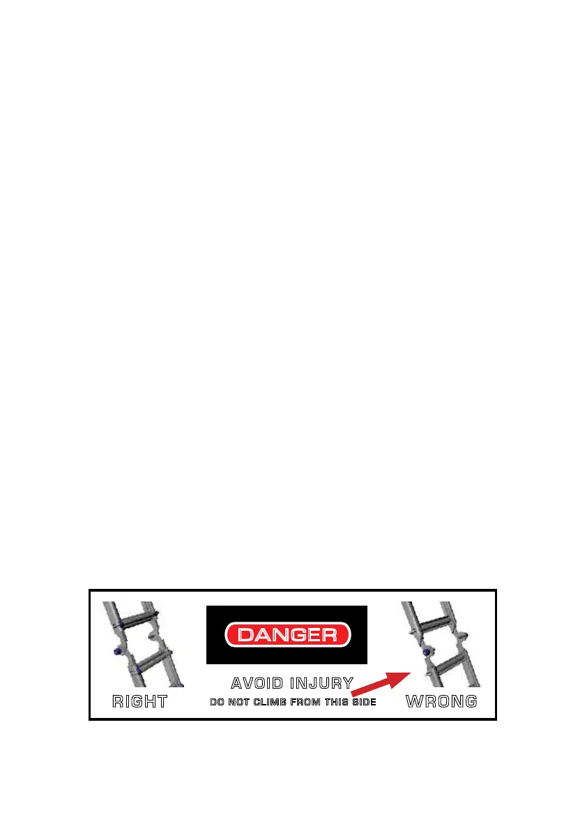 be placed between the moving rungs. Whilst extending the ladder up or down always hold the
