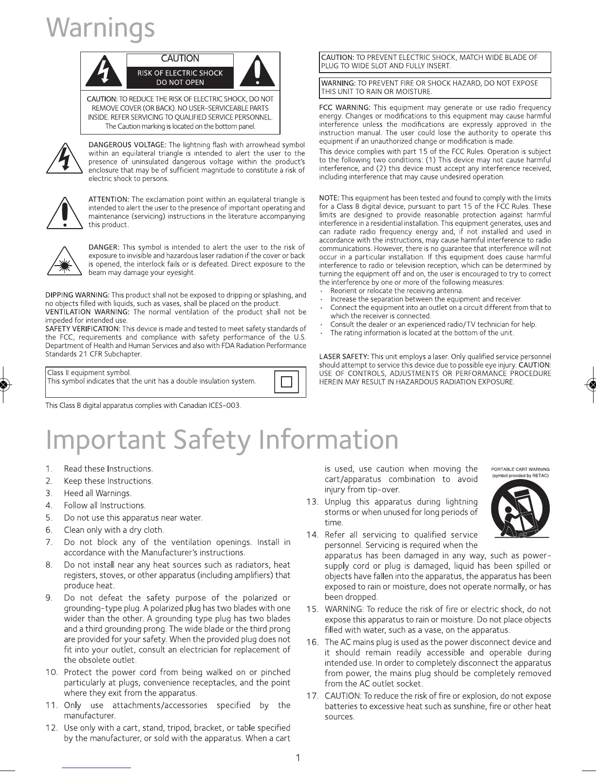 The Singing Machine iSM1028XA - Warnings; General Safety Warnings; Important Safety Information