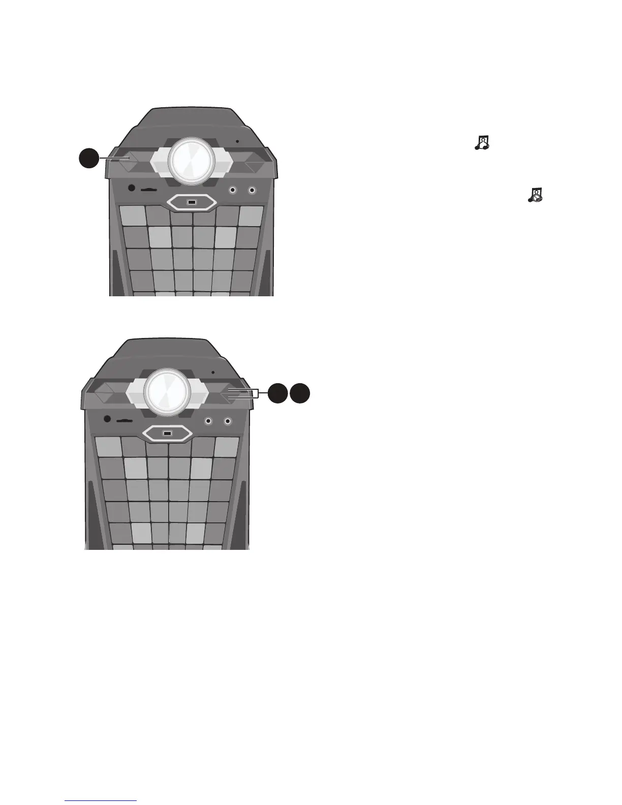 VOCAL button; “ ” will appear