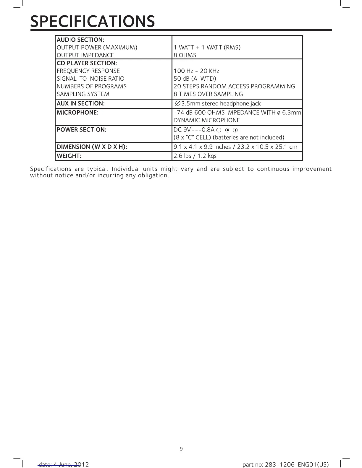 The Singing Machine SML283 - Specifications