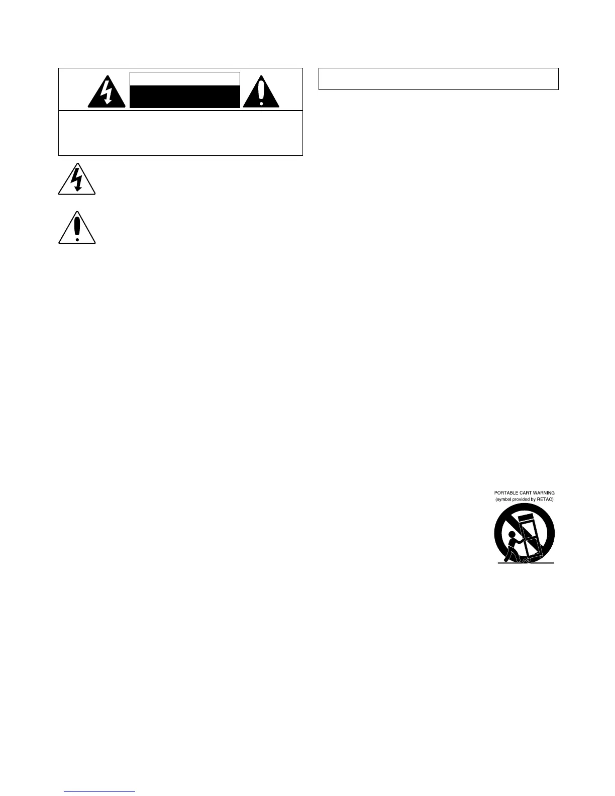 CAUTION: TO REDUCE THE RISK OF ELECTRIC SHOCK, DO NOT