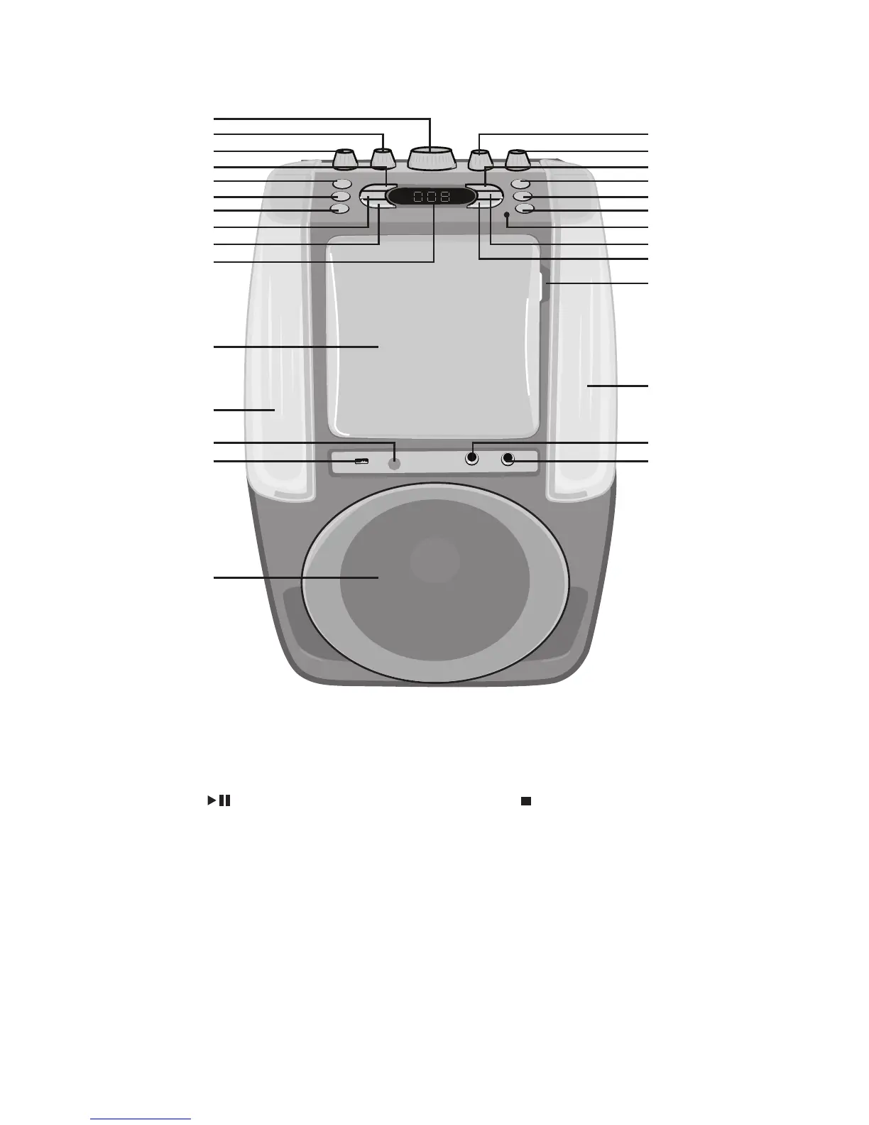 The Singing Machine SML605 - Top and Front Control Layout; Core Operational Buttons