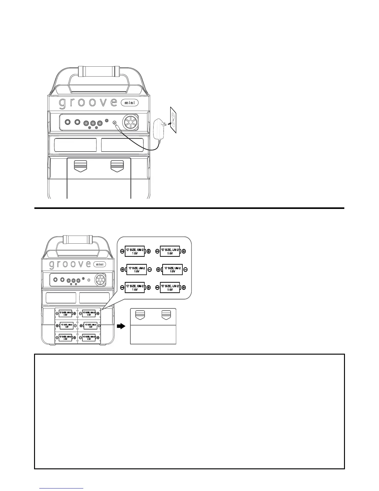 Insérez 6 piles alcalines « C » (non