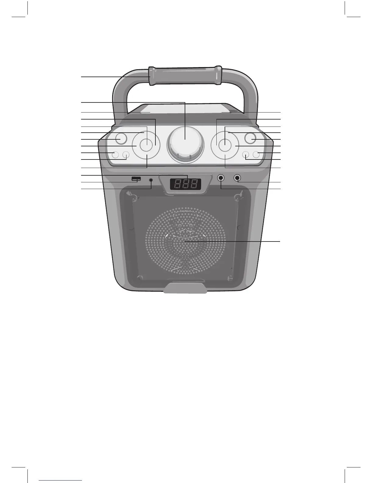 The Singing Machine SML682BTBK - Location of Controls; Top and Front Panel Layout