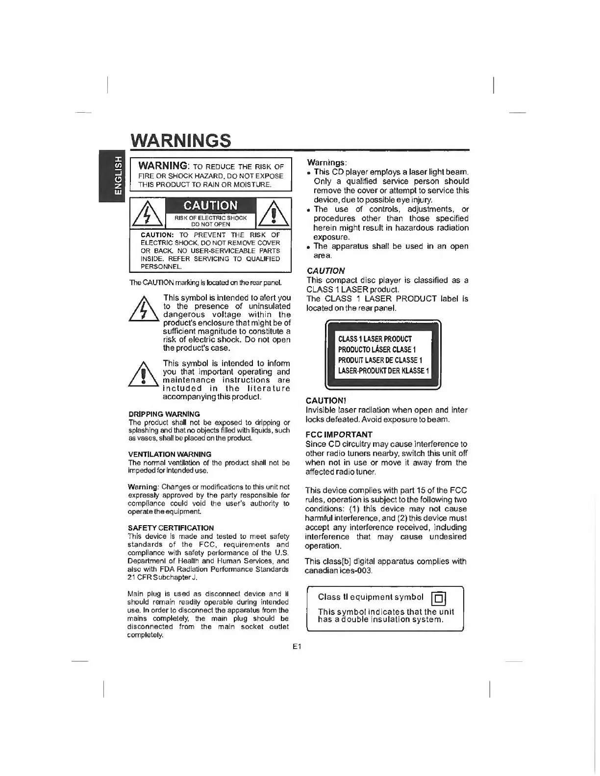 The Singing Machine STVG-519 - Warnings and Safety Precautions; General Safety Warnings; Laser Product Safety Information