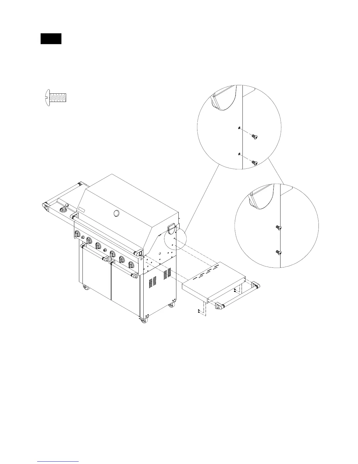 tighten these screws. Allow enough room to slide the slotted holes on the Right Side Shelf onto the screws.