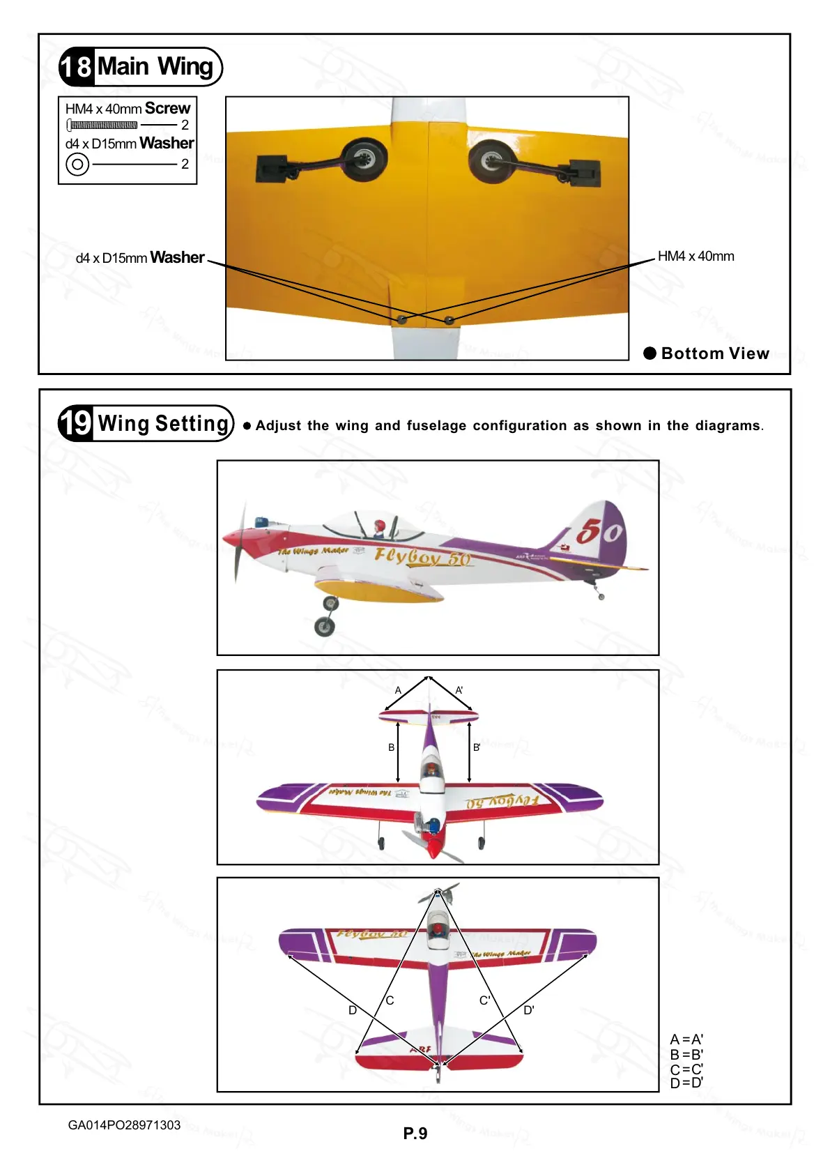 Adjust the wing and fuselage configuration as shown in the diagrams.