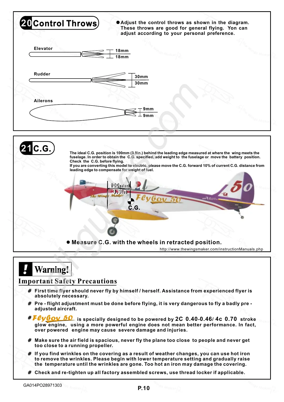 If you are converting this model to electric, please move the C.G. forward 10% of current C.G. distance from