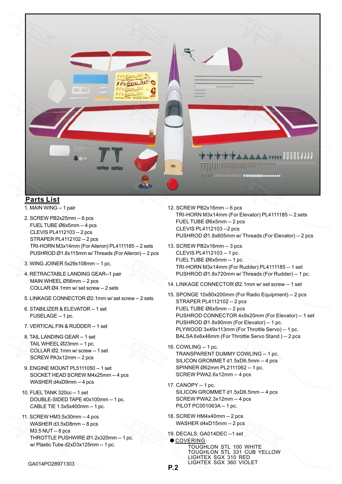 TRI-HORN M3x14mm (For Aileron) PL4111185 -- 2 sets
