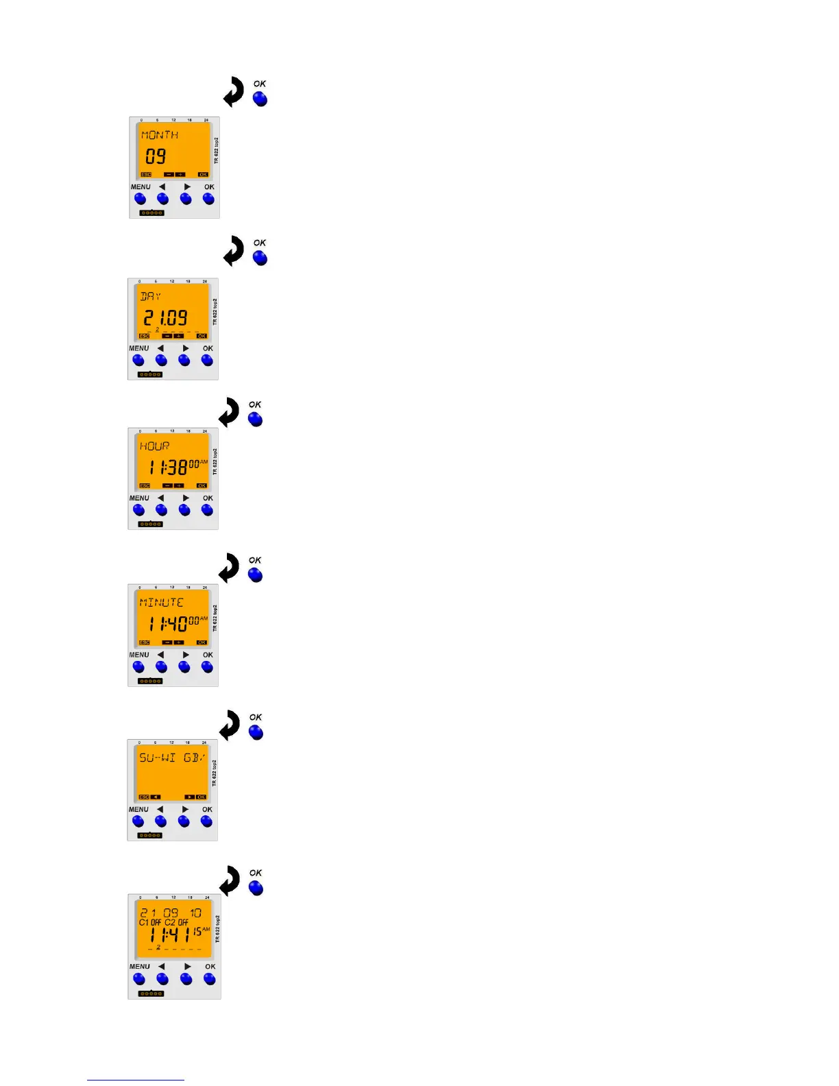 Either confirm with the OK push button or modify the day (flashing) with the arrow