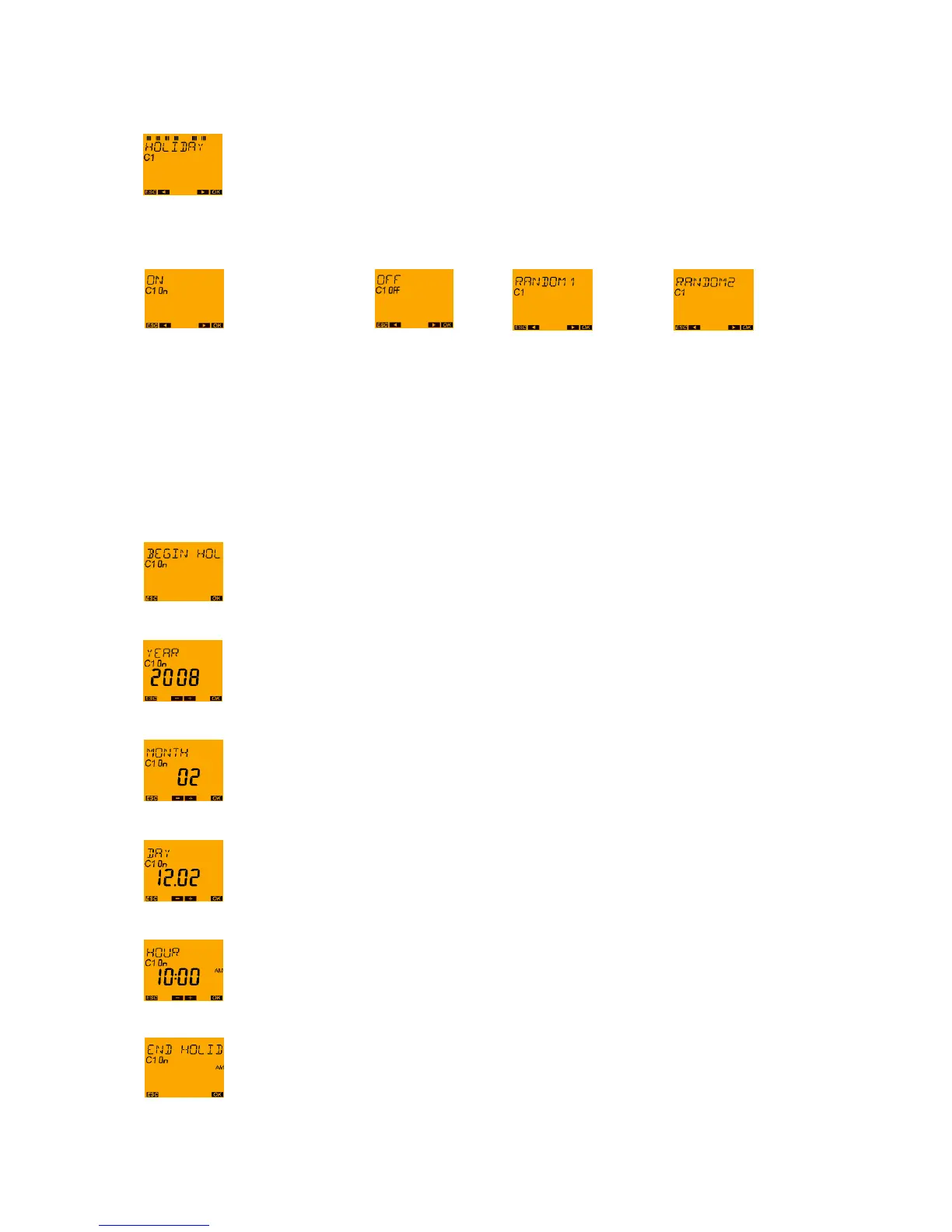 Press push button ► until HOLIDAY appears on the display and confirm with the OK