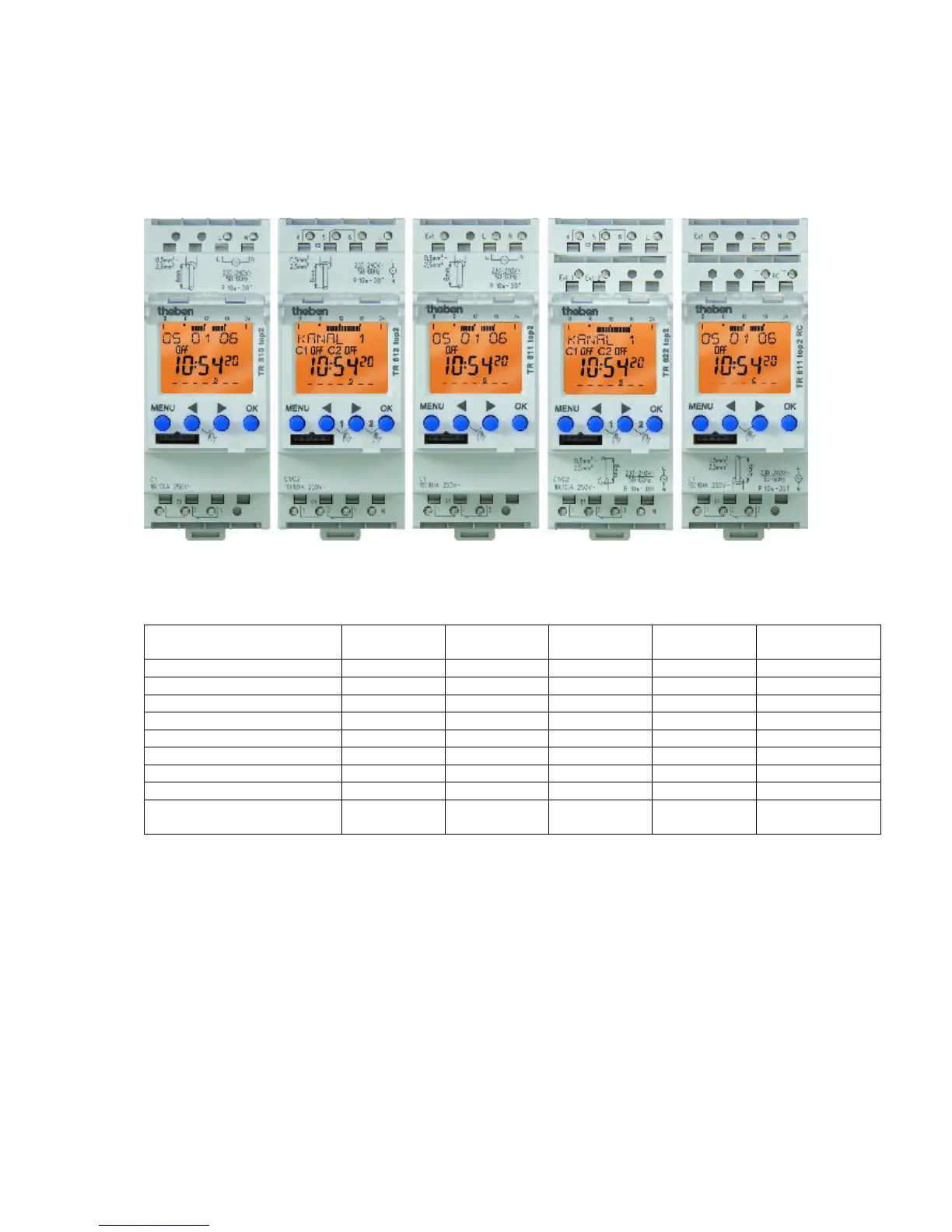 Theben TR top2 - Time Switch Overview; Type TR Top2 (35 MM) Overview