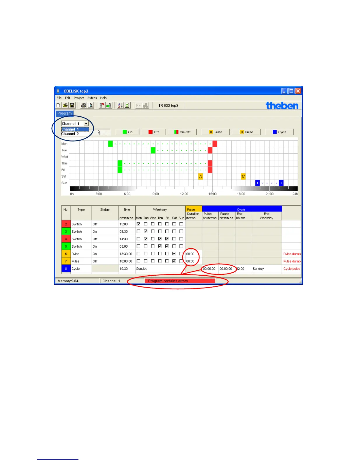 time switch the relevant channel must immediately be selected (see figure, blue circle).