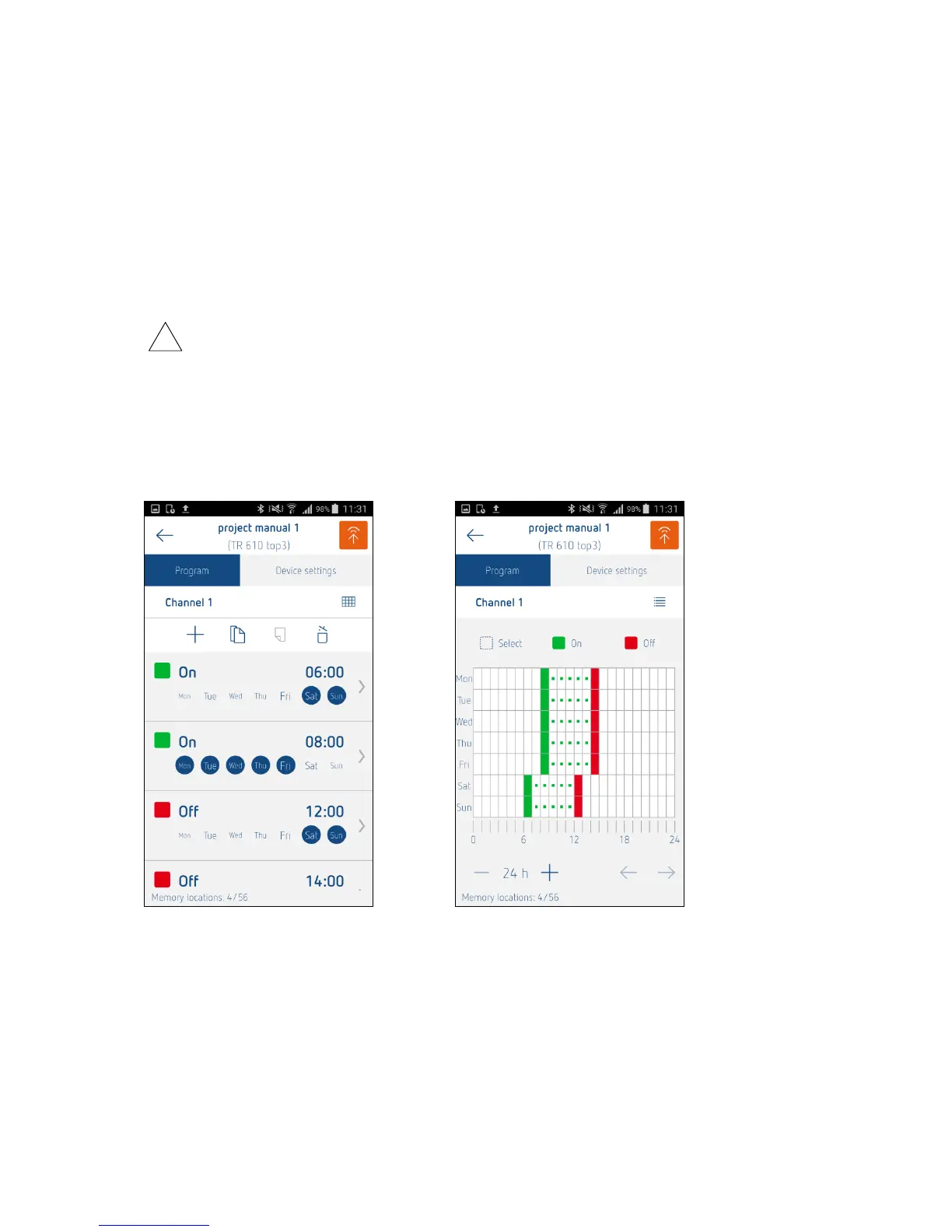 A project always consists of a program (e.g. Monday to Friday, 8:00 AM ON and 8:00 PM OFF) and