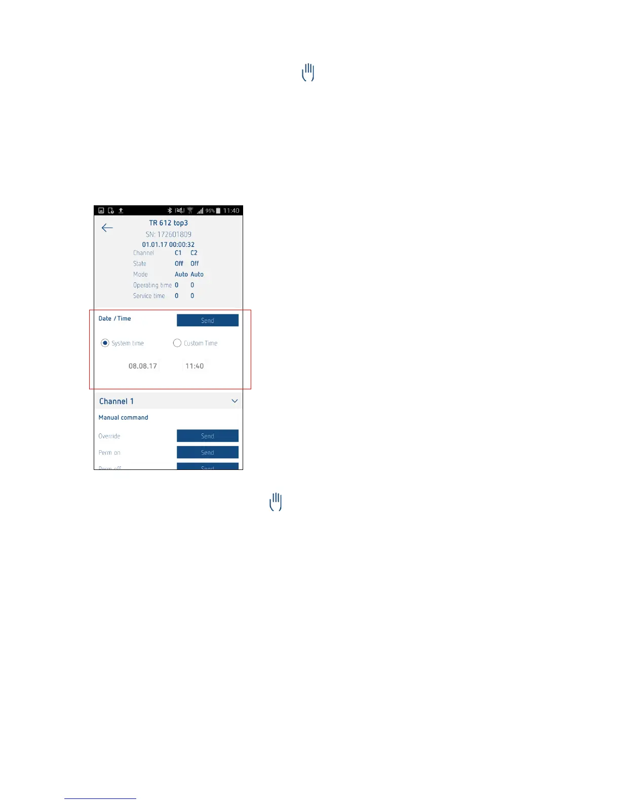 1. The mobile device time and date (system time) are transferred to the time switch.