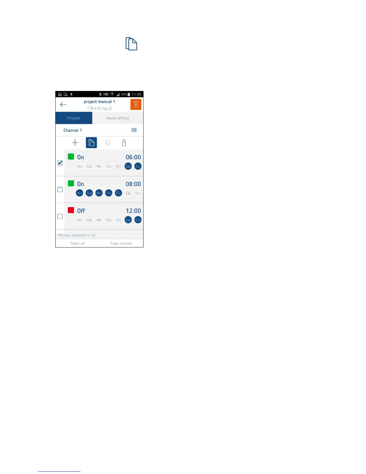 You can use the "Copy" icon to copy one or more switching times from the list. A selection box appears