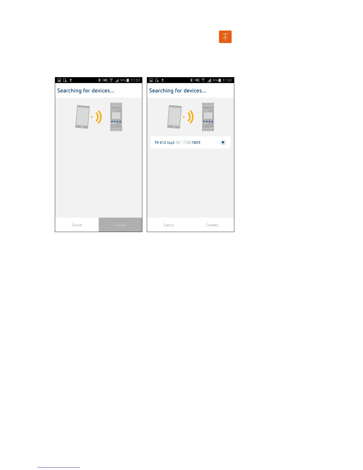 Tap the orange arrow symbol to start a transfer and search for all devices available over BLE in the