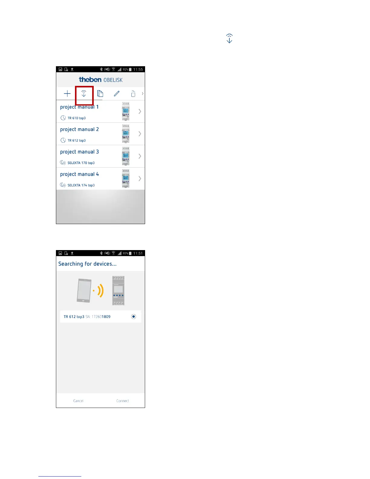 The app searches for all devices available over Bluetooth in the vicinity and displays them in a list.