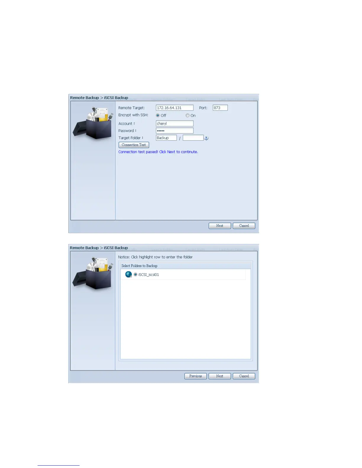 If the source unit contains iSCSI volume, it can be backed up to the target unit as