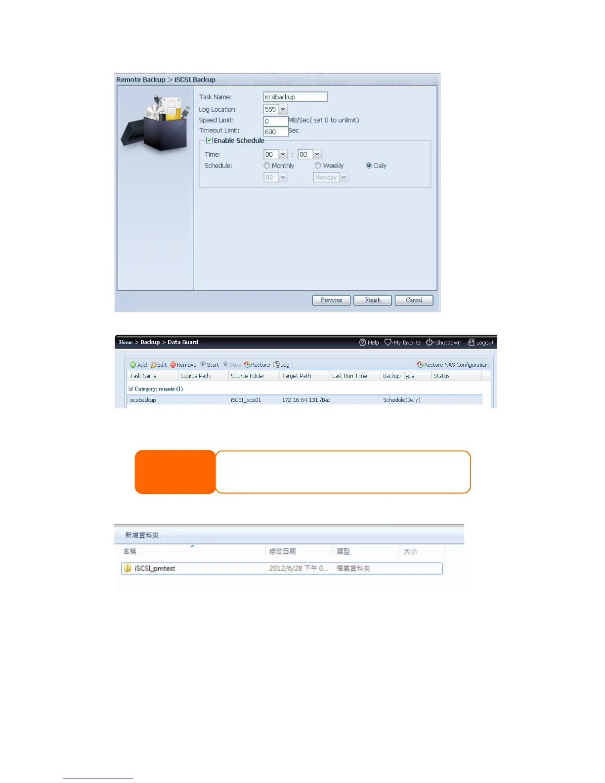 The iSCSI backup can see the result as below. The task “iSCSI_pmtest” has backup
