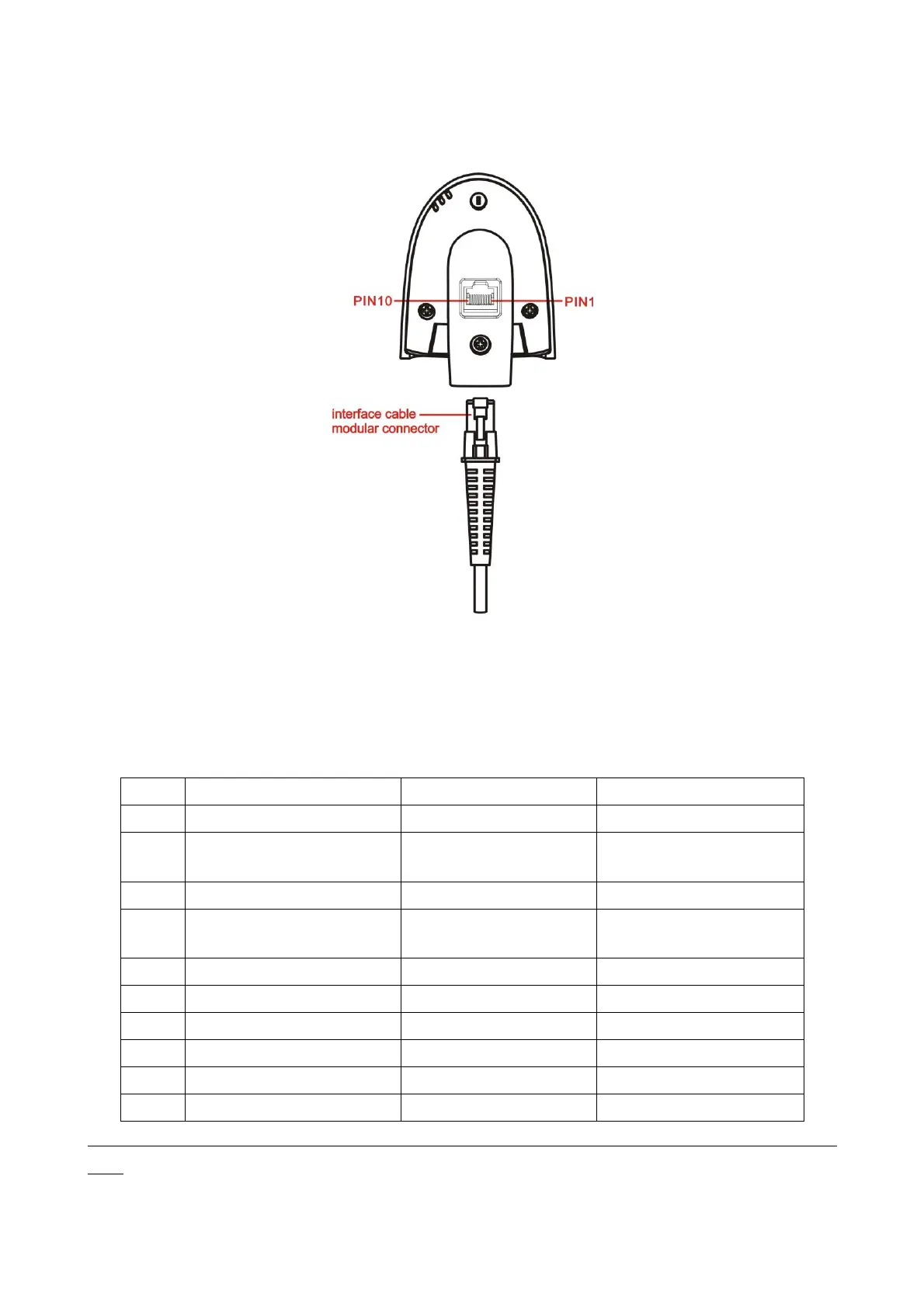 The pin-outs descriptions in Table 2-1 apply to the cable connector on the scanner and are for reference