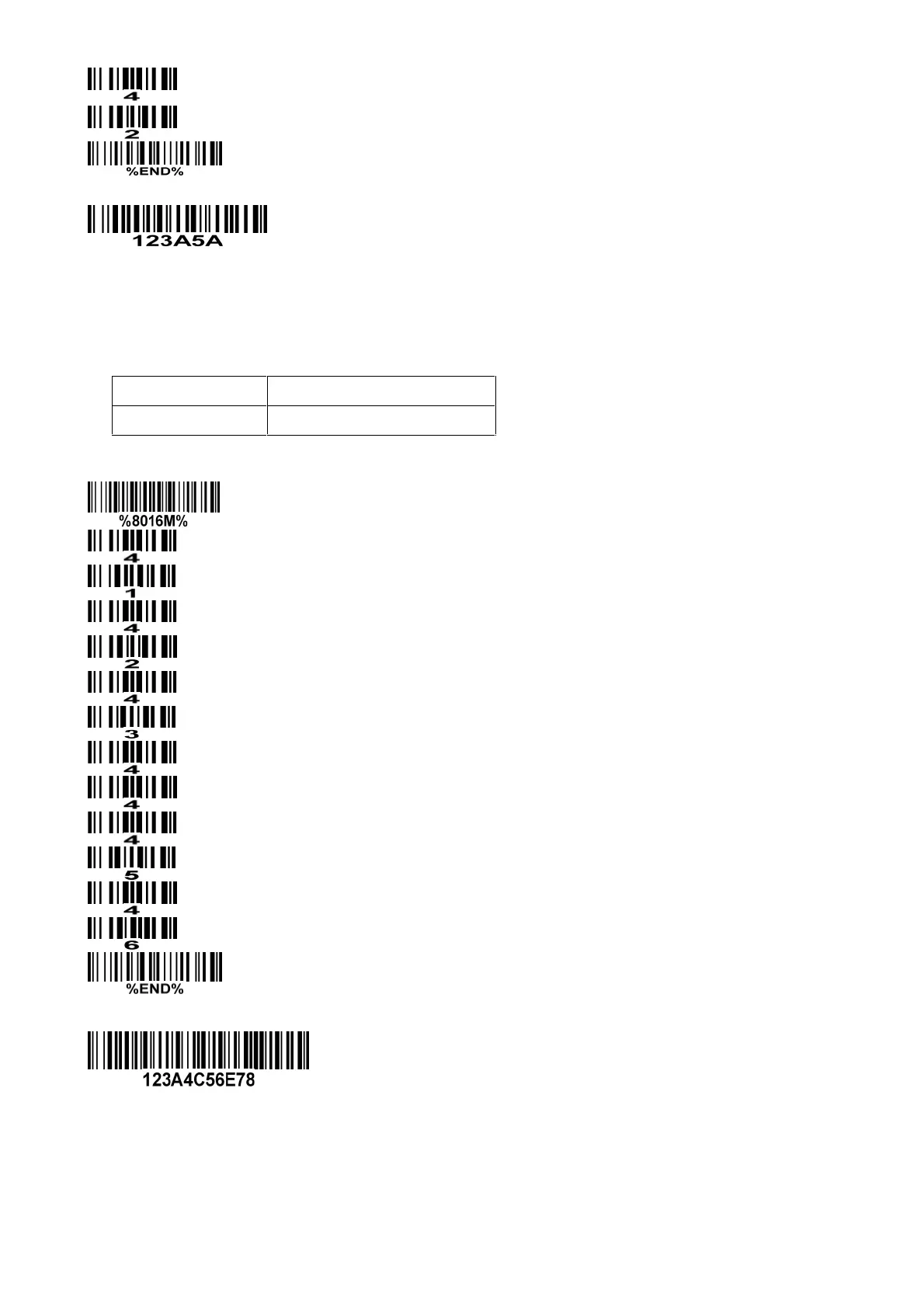 Steps: scan the following barcodes in order. The ASCII value for “A” is 41, for “B” is 42, for “C” is 43, for