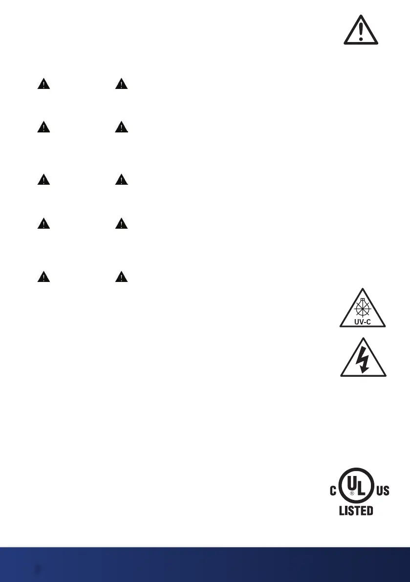 • Avoid contact with the UV light. Light emitted can be harmful to the