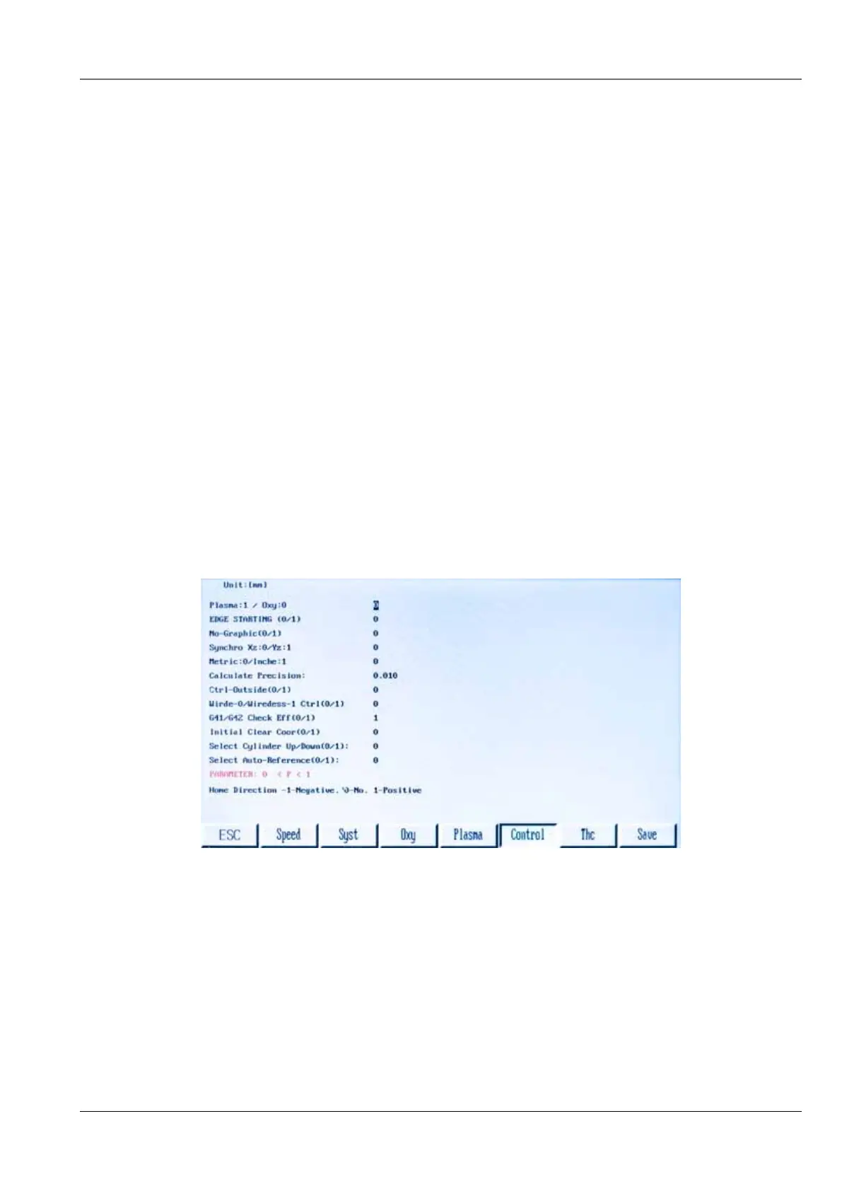 *PLASMA:1 / OXY:0: in Auto/MANUAL Modes, select 0 for oxy fuel and 1 for plasma.
