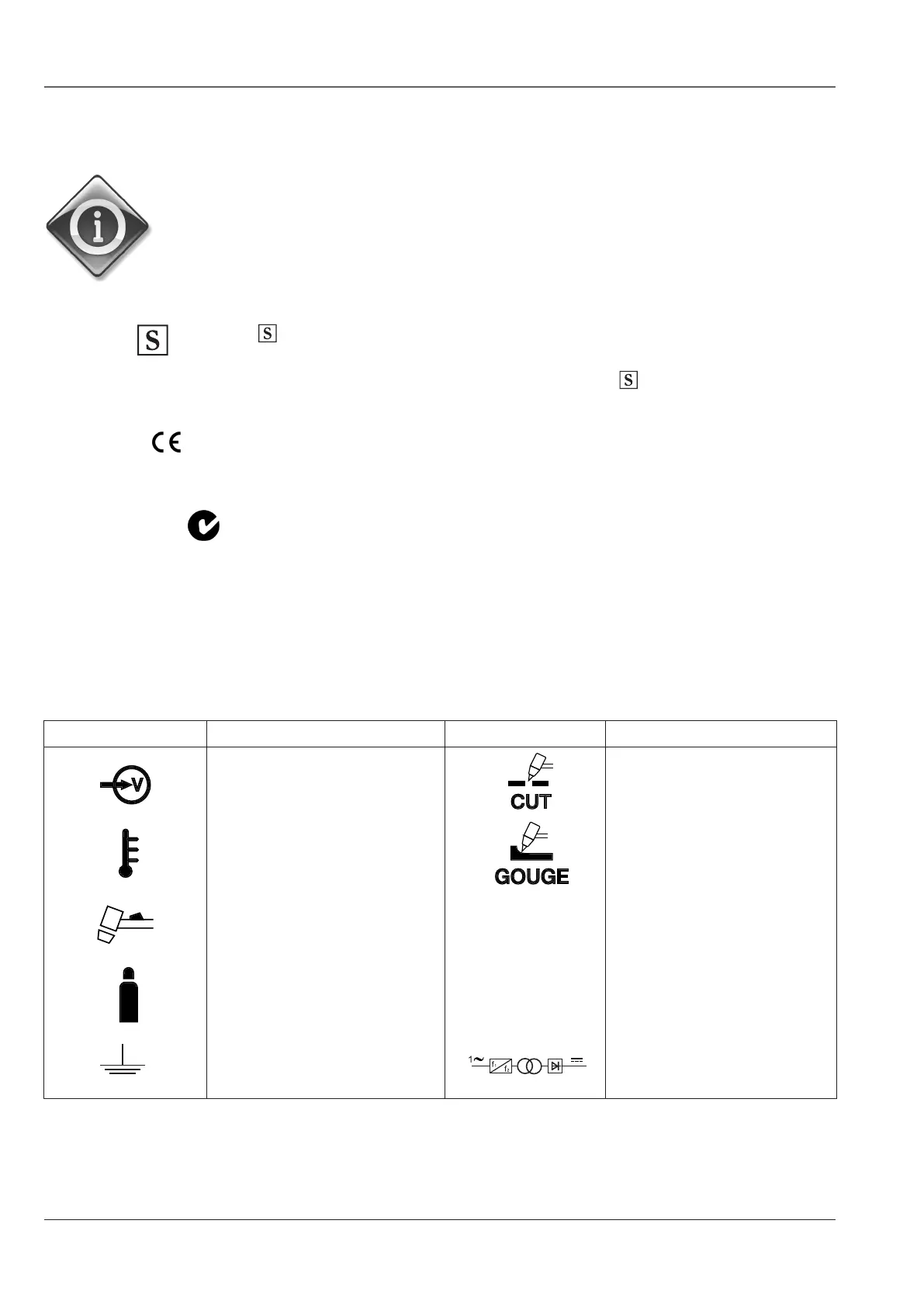 The following symbols may be present on the plasma arc power supply data plate, control labels