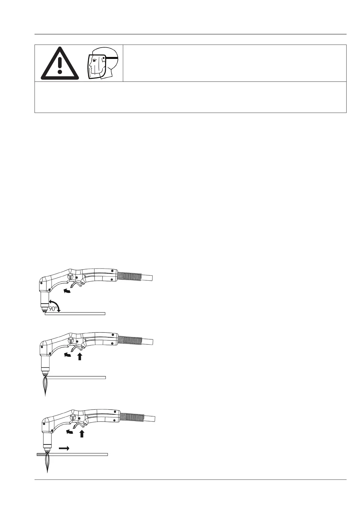 When angling the torch for cutting or piercing, molten metal (Arc Spray) will occur in the direction