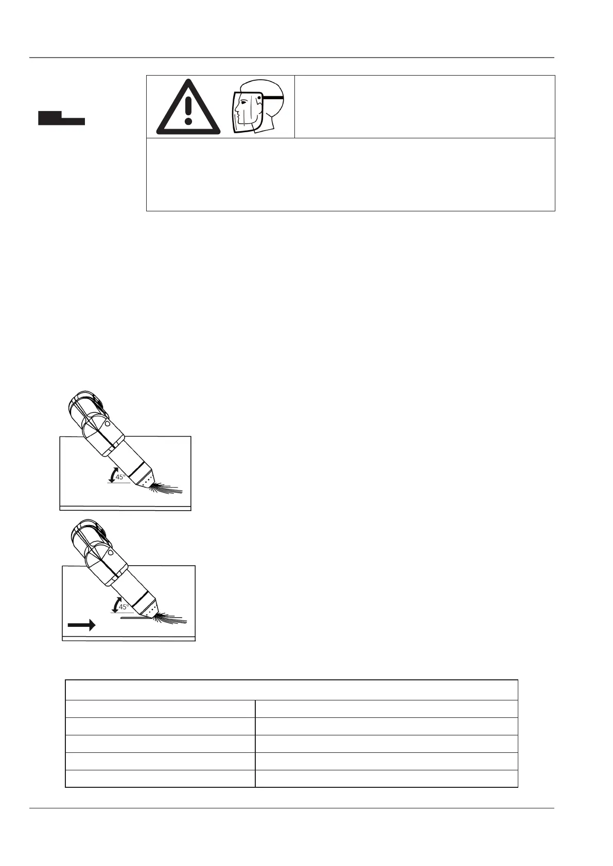 Hold the torch at an angle of 35° - 45° to the workpiece�