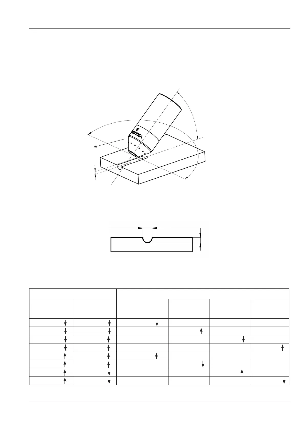 workpiece, changing the angle of the torch to the workpiece, changing the torch to workpiece