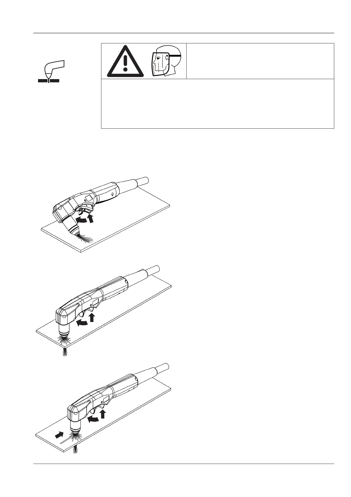 When angling the torch for cutting or piercing, molten metal (Arc Spray)