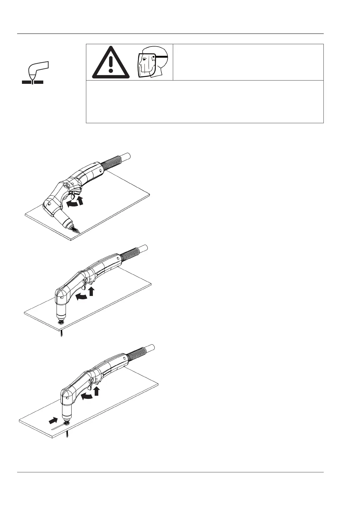 When angling the torch for cutting or piercing, molten metal (Arc Spray)