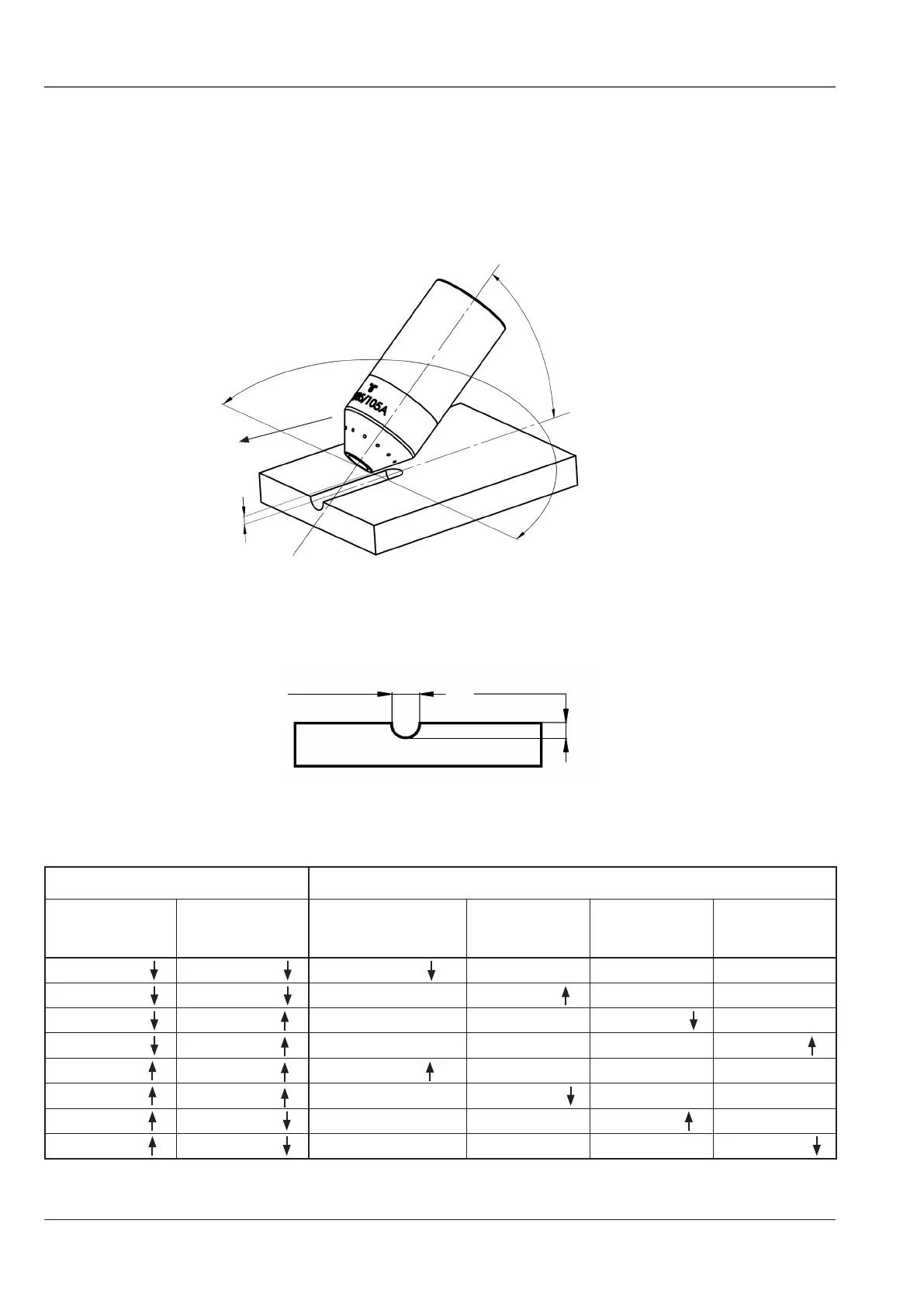 workpiece, changing the angle of the torch to the workpiece, changing the torch to workpiece