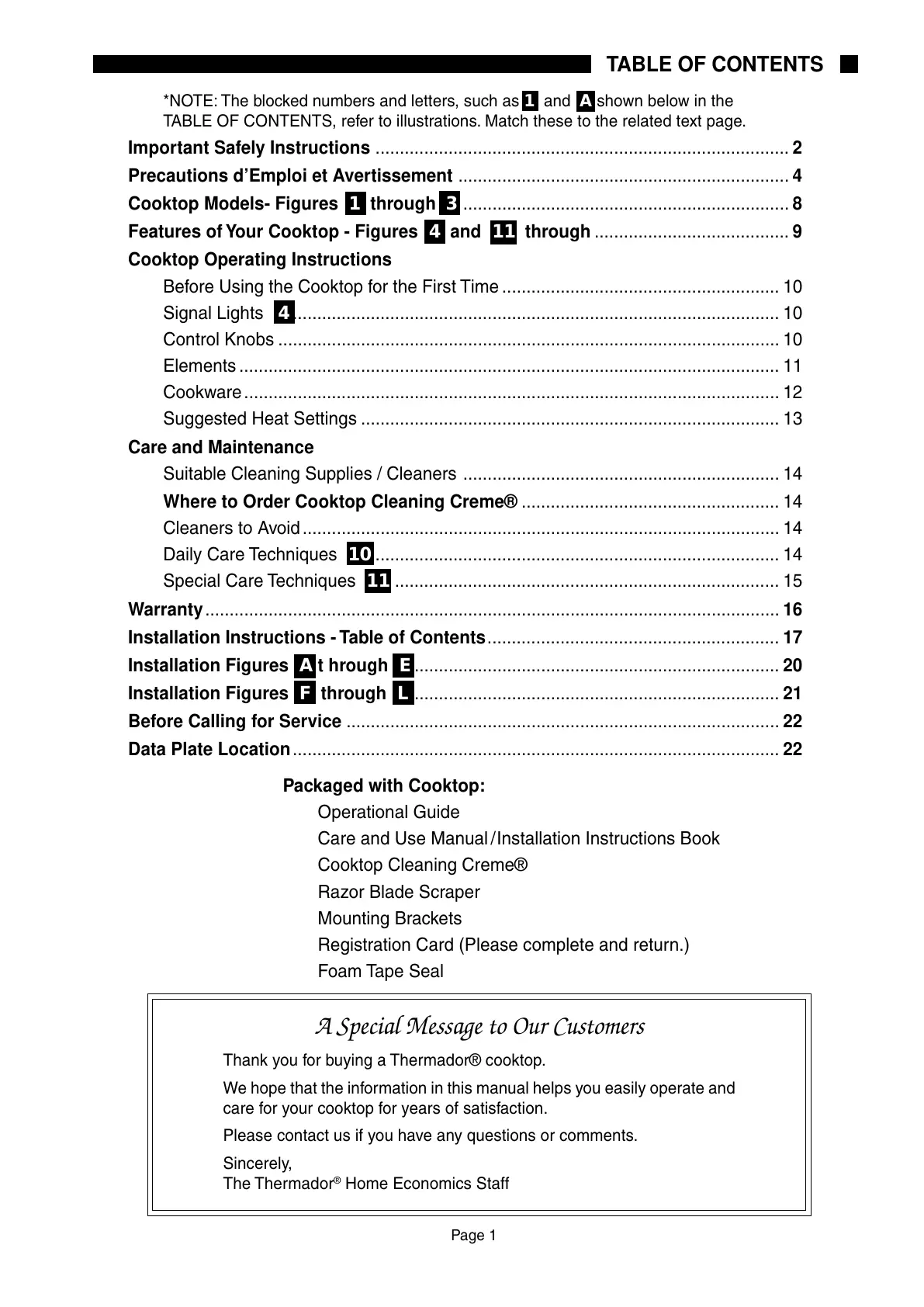 Features of Your Cooktop - Figures 4 and 11 through ........................................ 9