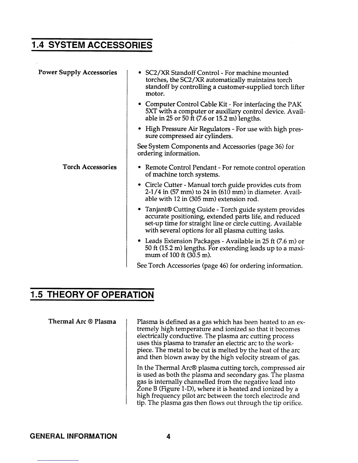 Thermal Arc PAK 5XT - SYSTEM ACCESSORIES; THEORY OF OPERATION