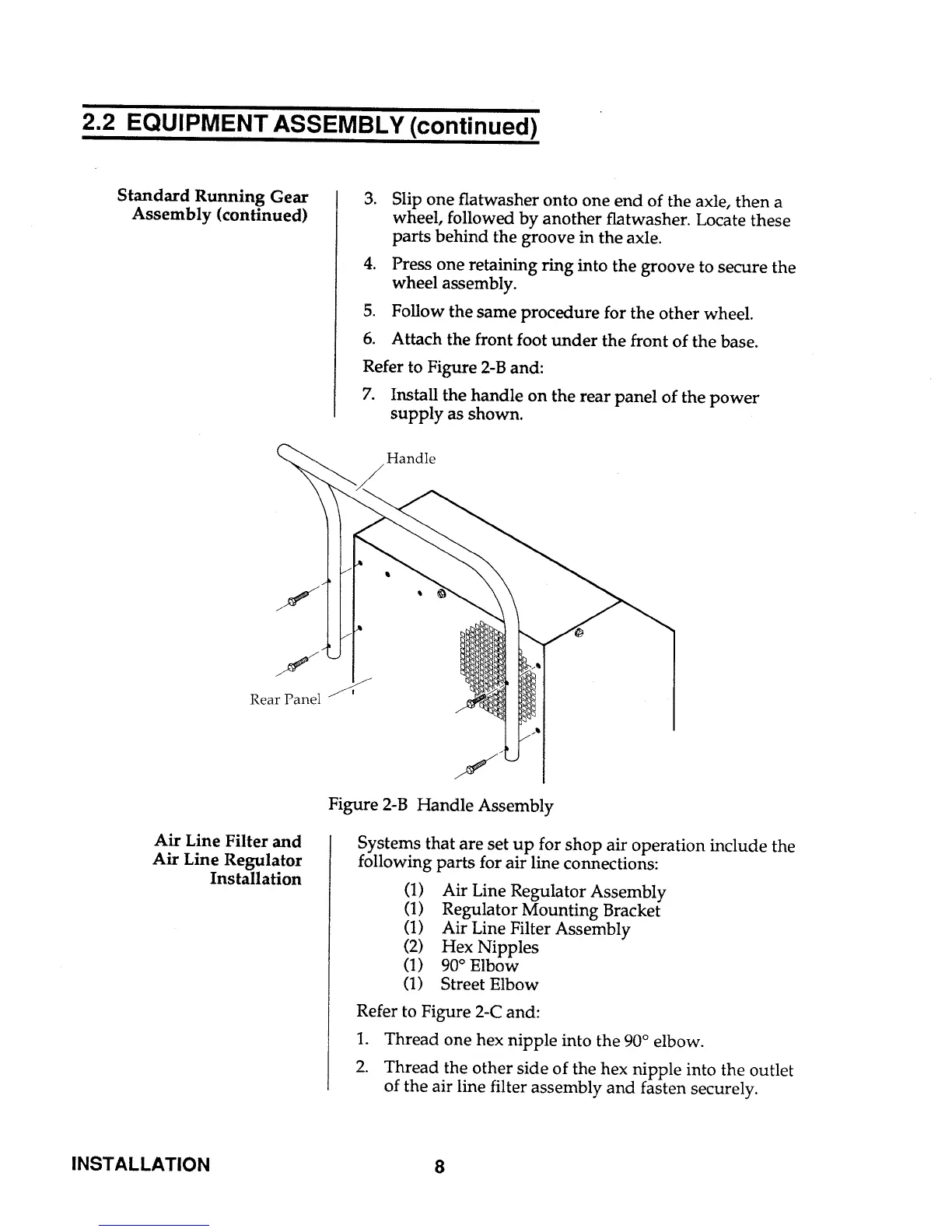 Thermal Arc PAK 5XT - Handle Assembly; Air Line Filter and Air Line Regulator Installation