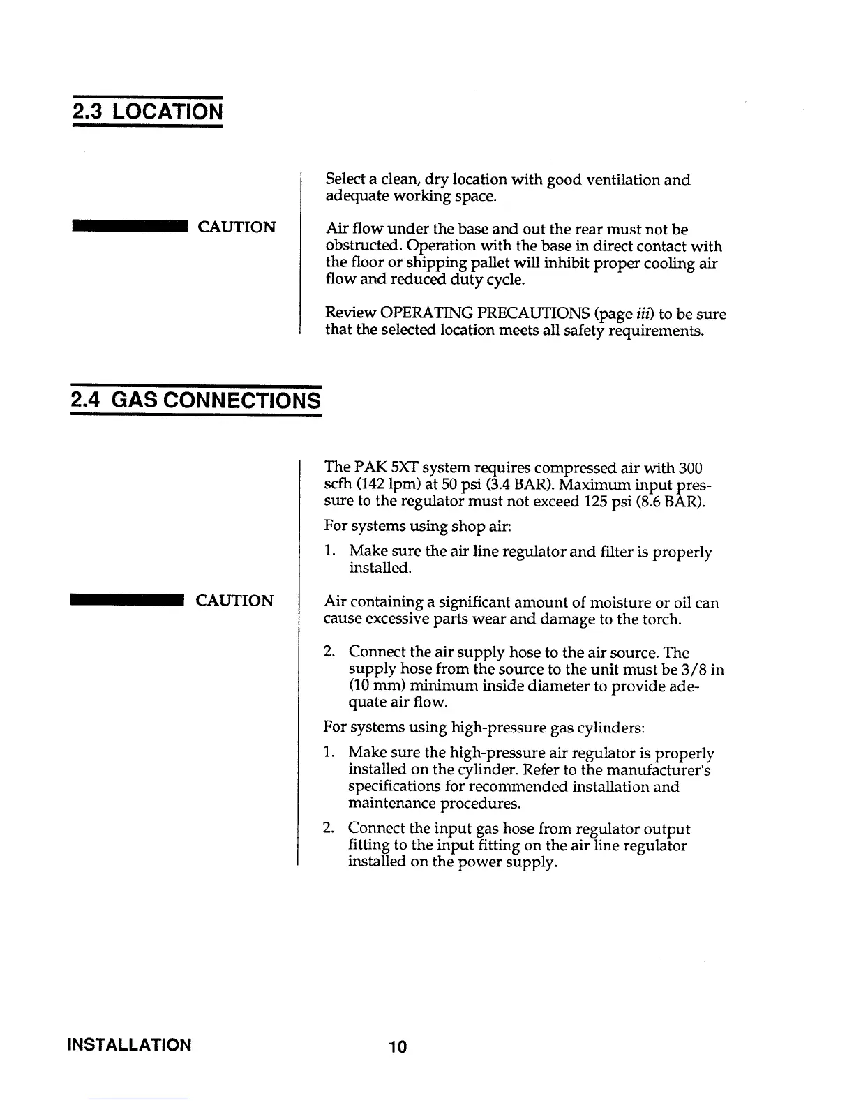Thermal Arc PAK 5XT - LOCATION; GAS CONNECTIONS