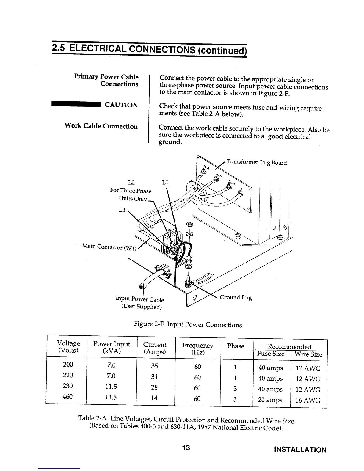Thermal Arc PAK 5XT - Primary Power Cable Connections; Work Cable Connection