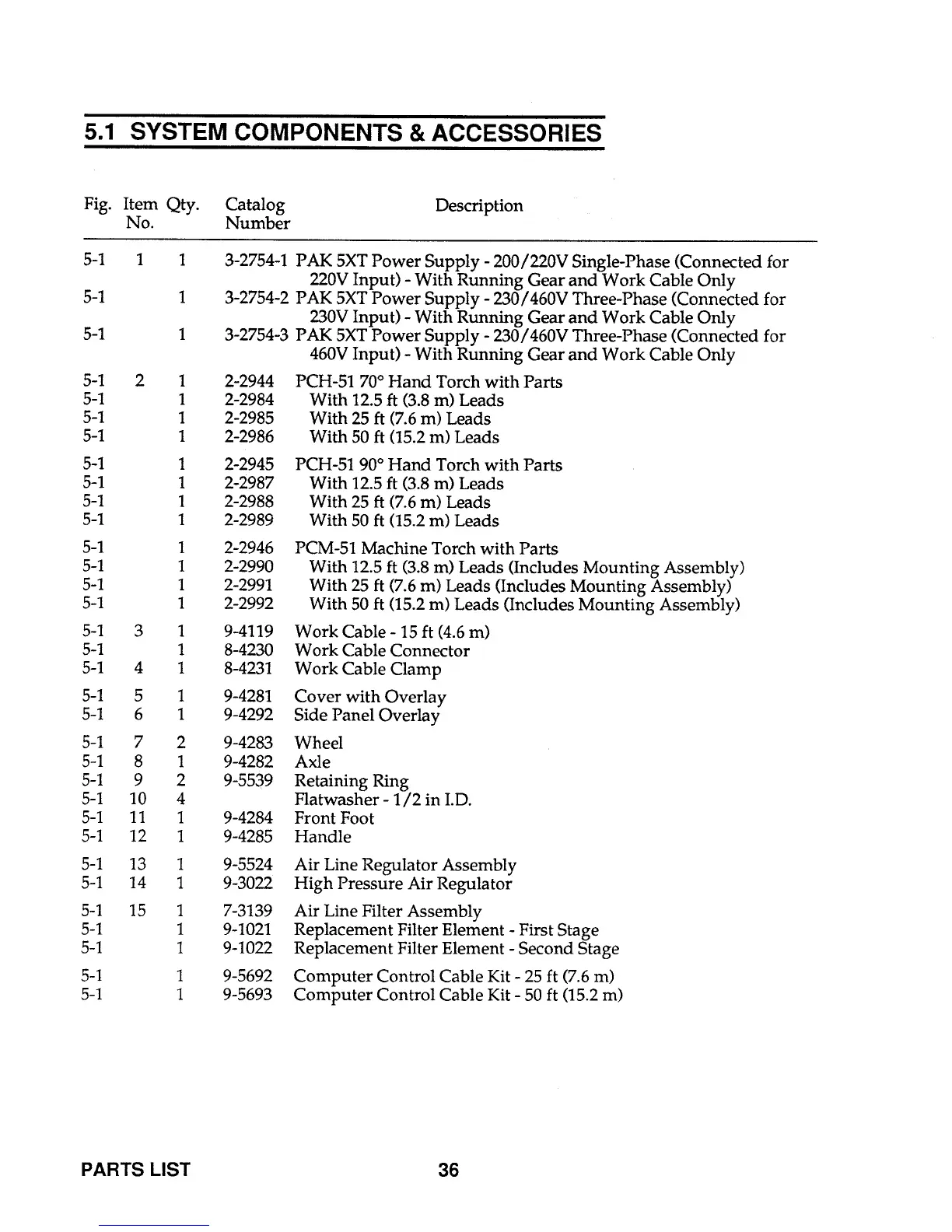 Thermal Arc PAK 5XT - SYSTEM COMPONENTS & ACCESSORIES