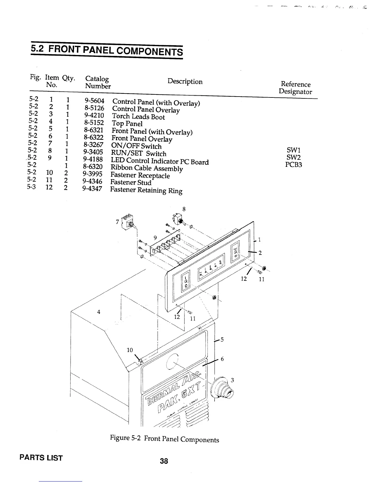 Thermal Arc PAK 5XT - FRONT PANEL COMPONENTS