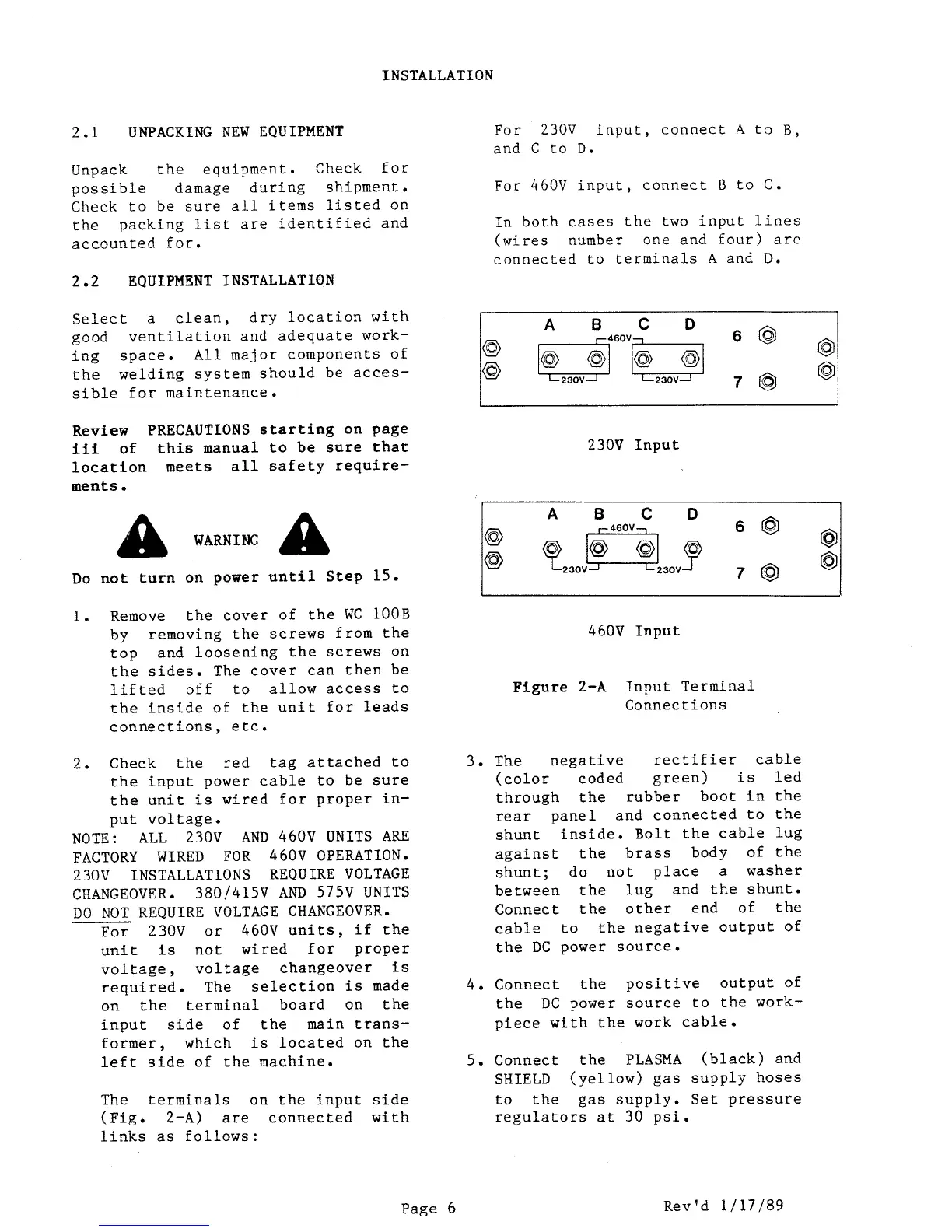 Thermal Arc WC100B - Installation; Equipment Installation Steps