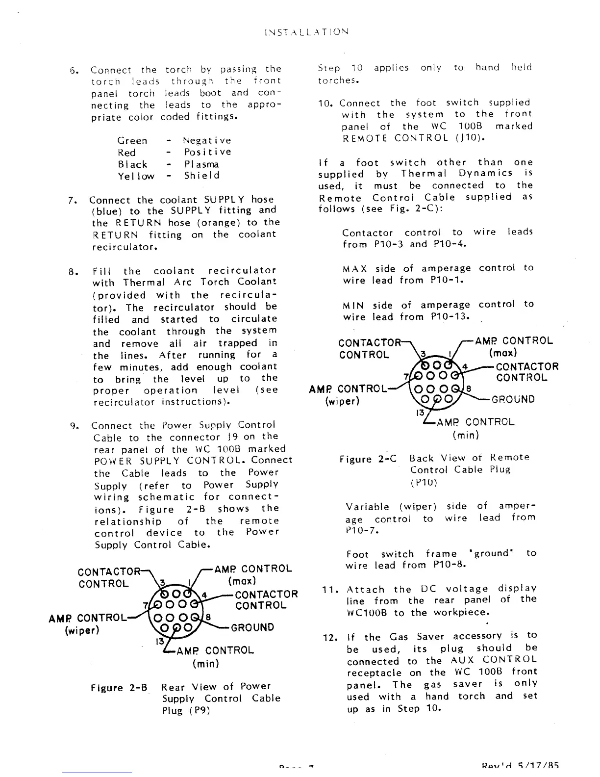 Thermal Arc WC100B - Rear View of Power Supply Control Cable Plug; Back View of Remote Control Cable Plug